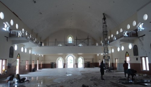The church construction works (builder work) are nearing a closure. The alter, marble flooring, painting and other interior works are heading for a kick off soon. White wash is currently going on: